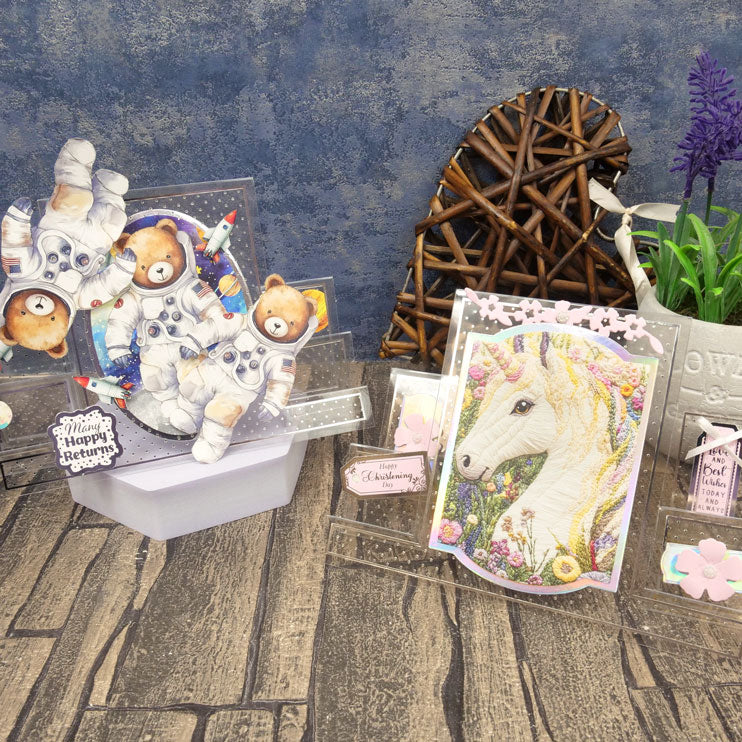 It’s clear to see that this super special acetate selection of Hunkydory’s fan favourite Foiled Pattern Stepper Cards are about to give your crafty creations a whole new look! These cleverly constructed and endlessly useful card blanks are built from heavyweight acetate and feature stunning foiled designs which glisten and shine from the wonderfully sturdy transparent material.