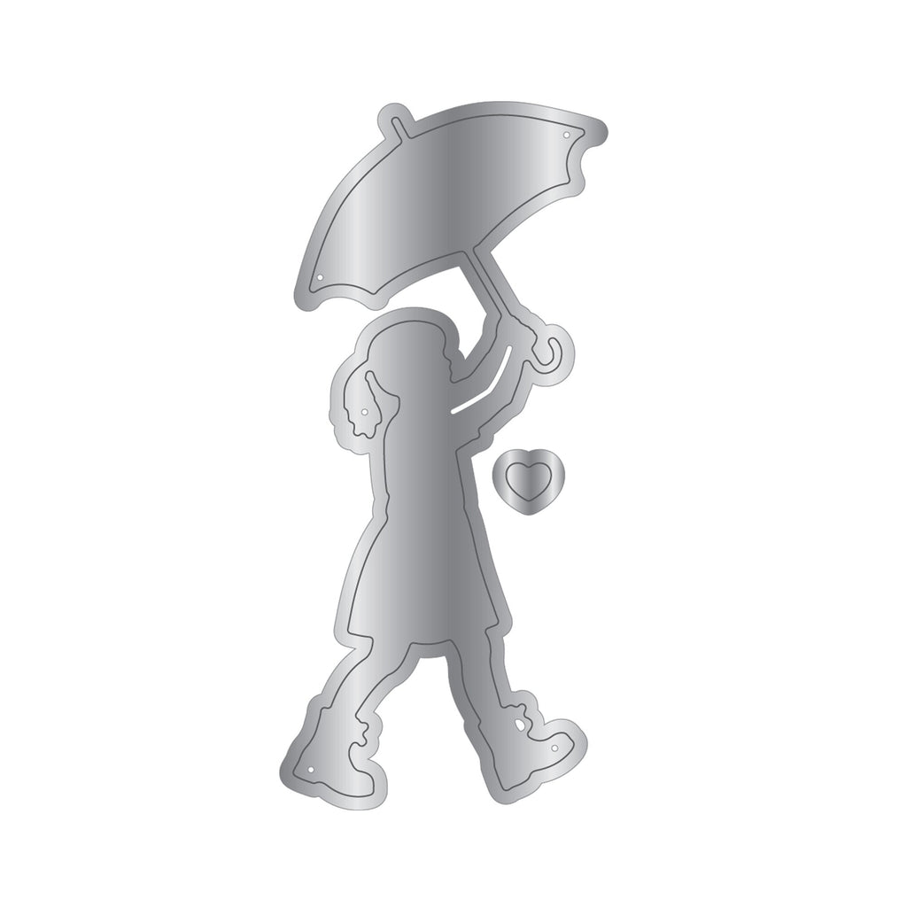 Spread the love with your crafts and projects with the Showered in Love Metal Die, Stamp & Stencil Set by Crafter’s Companion. This set includes two metal die of a girl with an umbrella and a stencil of falling hearts with an accompanying sentiment stamp, perfect for your next love-themed handmade card, scrapbook page, gift box, and more.