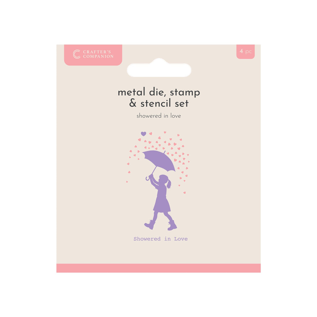 Crafters Companion Metal Die, Stamp & Stencil Set - Showered In Love