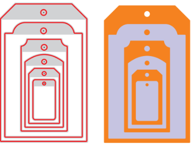 6-piece multimedia die set of tag outlines of different sizes.