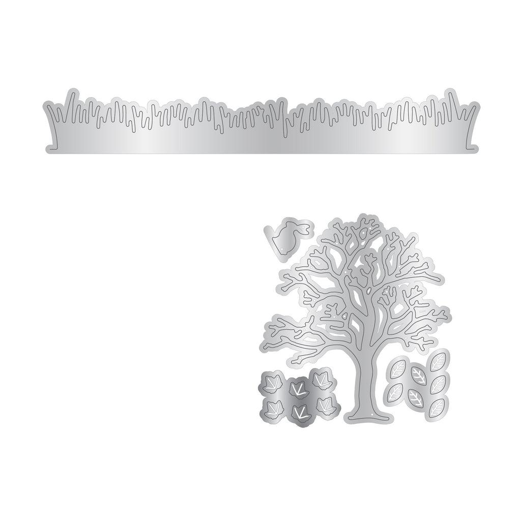 - 2-piece metal die set including an Edge’able of a grass landscape and a die of a tree