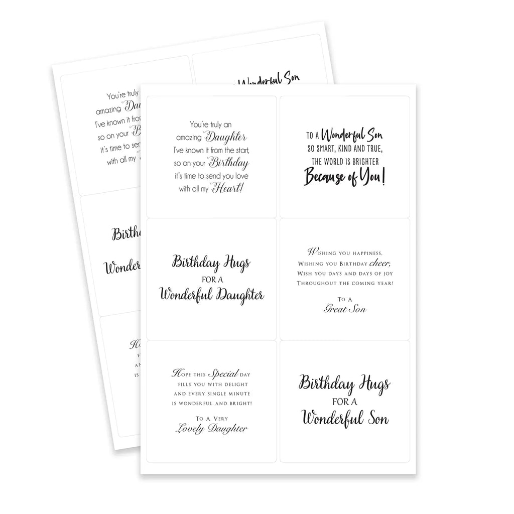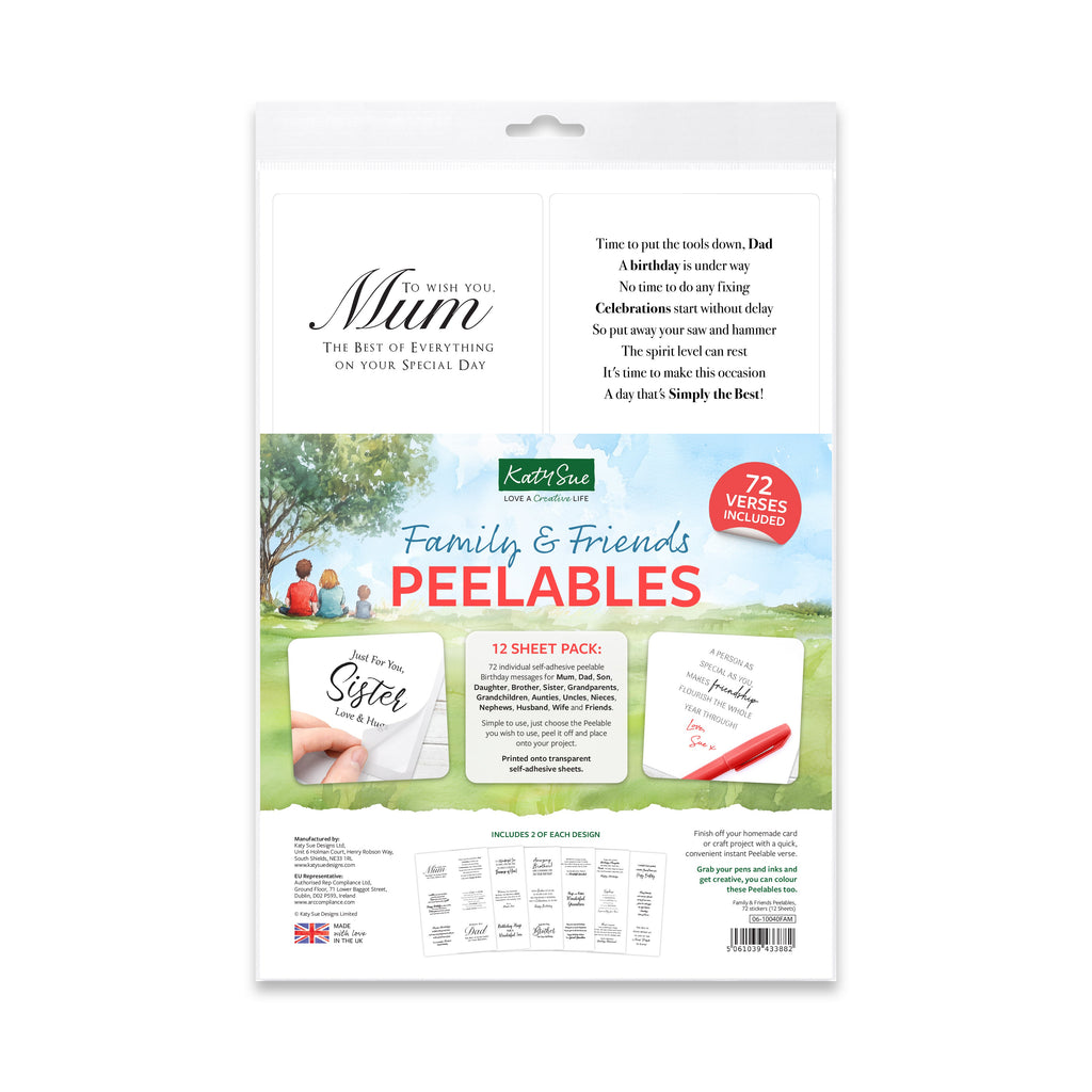 Send thoughtful messages for loved family members & treasured friends with the Family & Friends Peelables. This comprehensive set of 72 self-adhesive peelable verses is designed for those extra-special birthday cards.