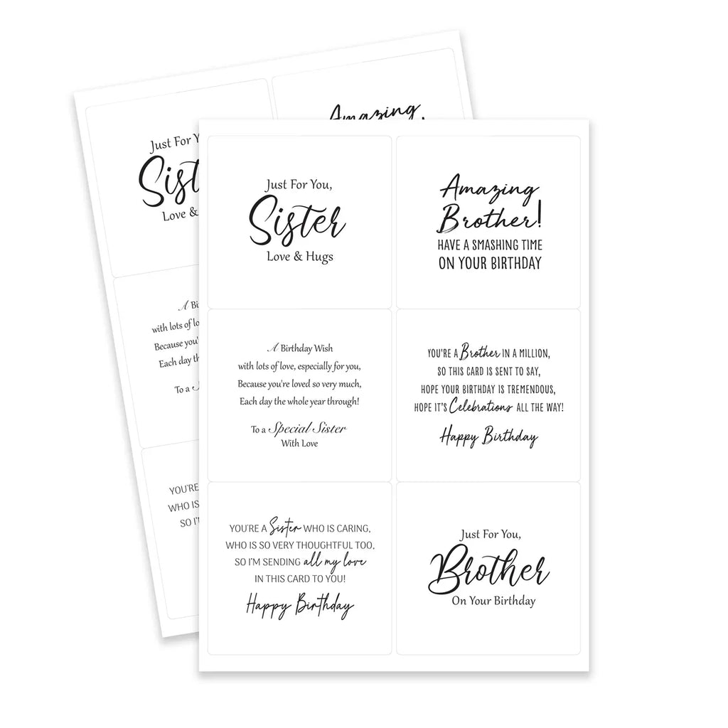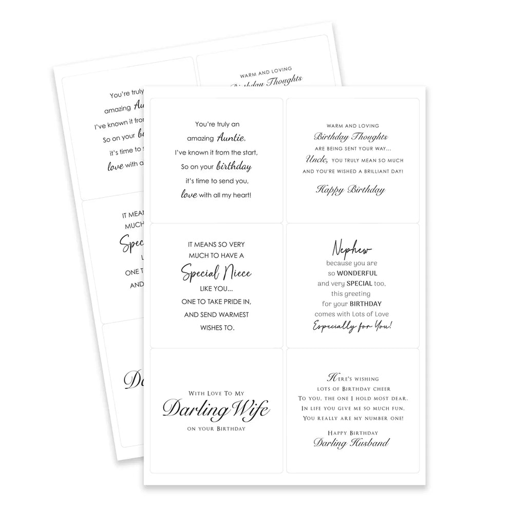 Featuring 36 unique birthday messages, each design is included twice, so you’ll always have the perfect sentiment on hand. Whether you're crafting for Mum, Dad, Son, Daughter, Brother, Sister, Grandparents, Grandchildren, Aunties, Uncles, Nieces, Nephews, Husband, Wife, or Friends, this set makes it easy to personalise your designs with heartfelt sentiments for the people who matter most.