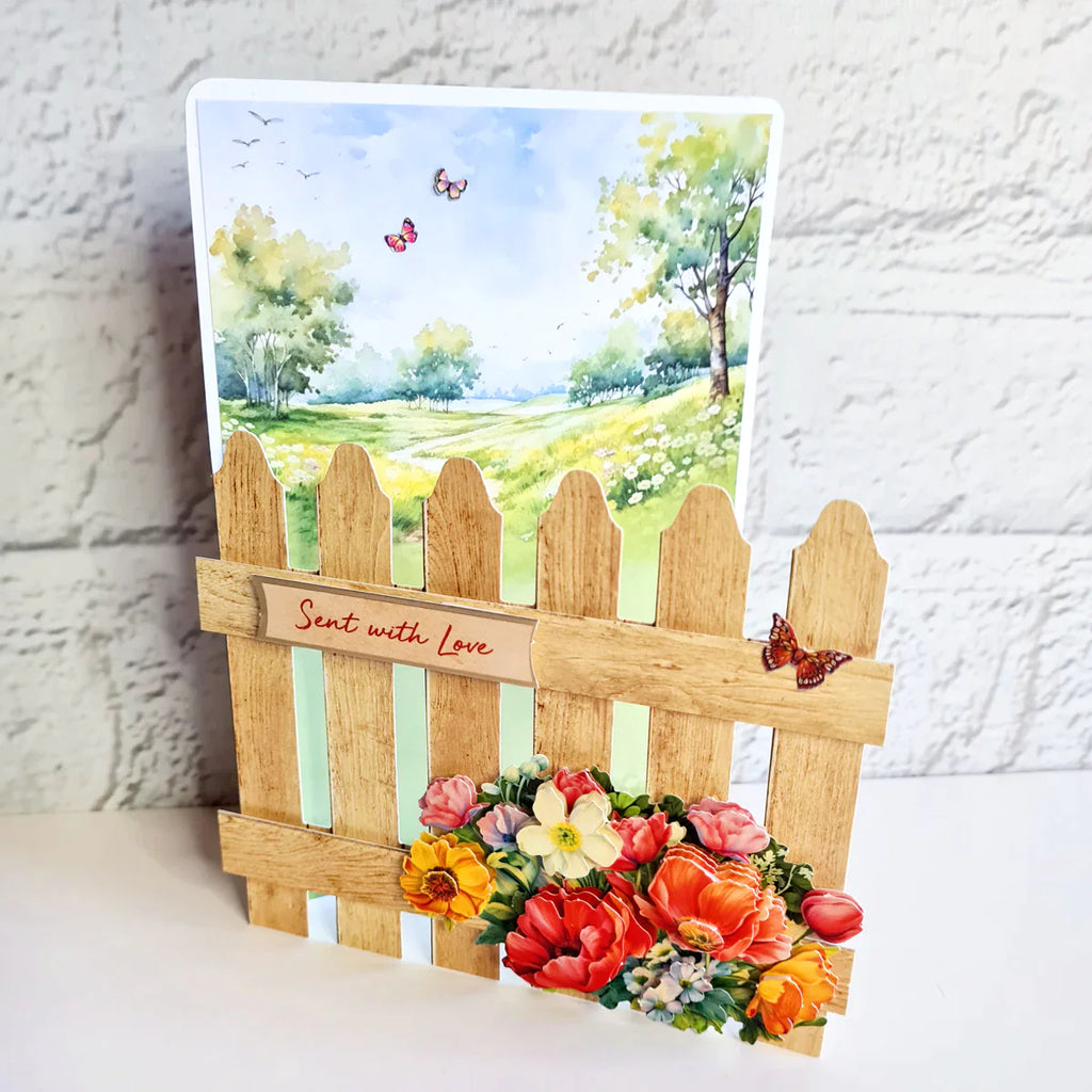 Four delightful picket fence designs are included, each capturing a distinct look - choose from light oak, rustic oak, contemporary whitewashed wood, or grey. Each picket fence card comes already die-cut and creased ready to pop out and assemble. Printed on high-quality 300gsm card, these cards are the perfect addition to any card makers collection.