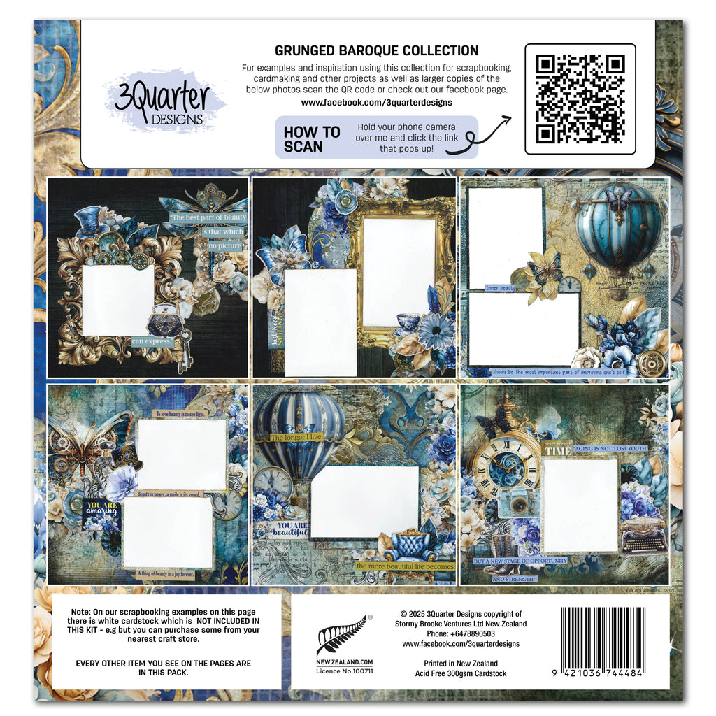 3Quarter Designs Grunged Baroque 12x12 Design Paper & Diecuts Set