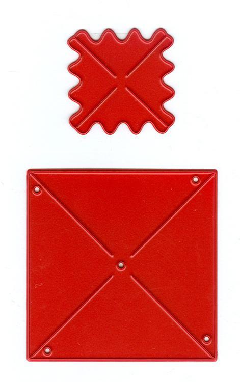 The larger die cuts the shapes for the pinwheel and also cuts tiny holes so that you can easily line the outer holes with the center hole and attach with a brad.
