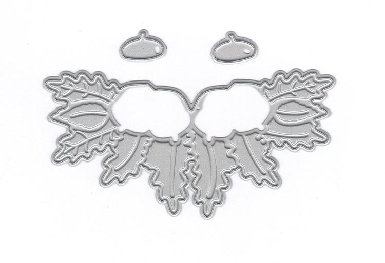 Cutting-emboss die - Acorns & Leaves. 3 piece die (Leaf design and 2 small acorns). Cut the shape from cardstock with this die using your cutting and embossing machine then emboss the leaves by running the die and paper through your machine with an embossing mat. This set of dies look great when the embossed design is highlighted with Cosmic Shimmer Gilding Wax (item# CSW). Size: 3" x 1 1/2".