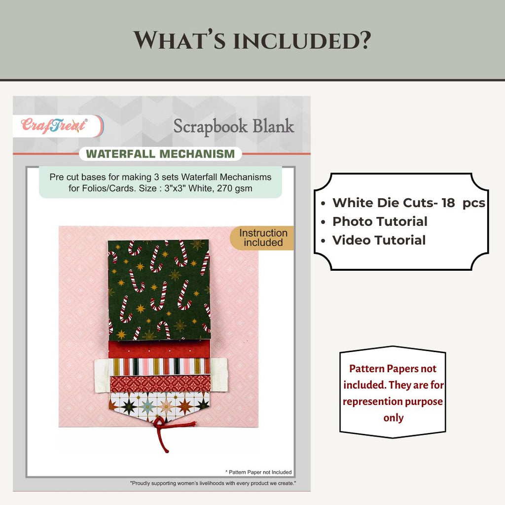 CrafTreat Scrapbook Blank Precut Base - Waterfall Mechanism White - 3"x3"