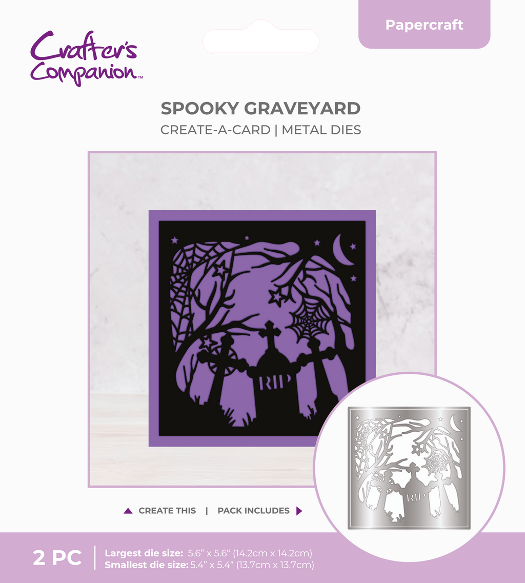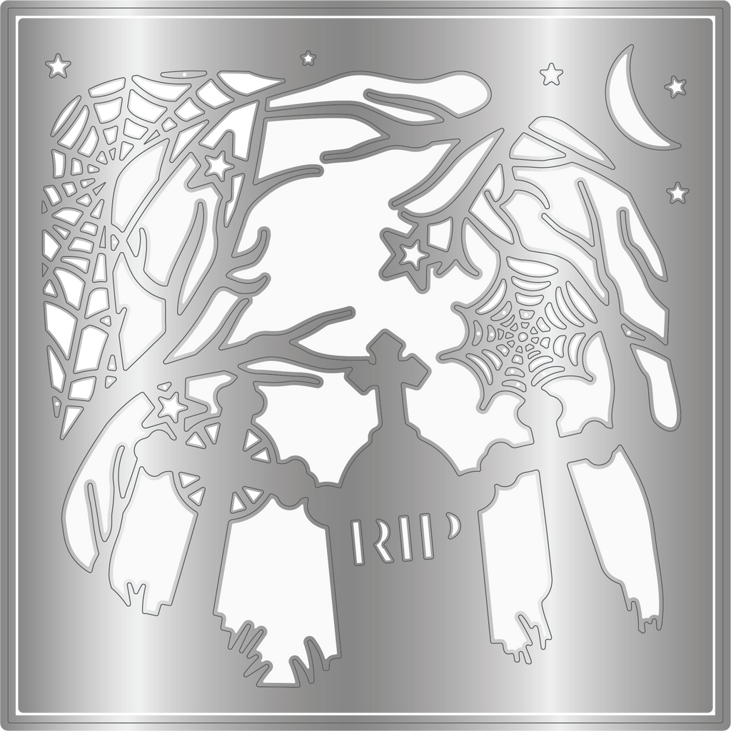 • 2-piece metal die set to create a spooky graveyard scene