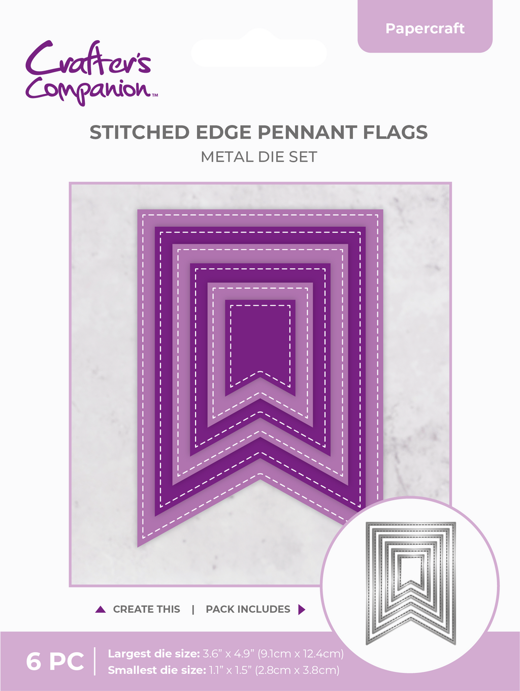 Crafter's Companion Metal Die - Stitched Edge Pennant Flags