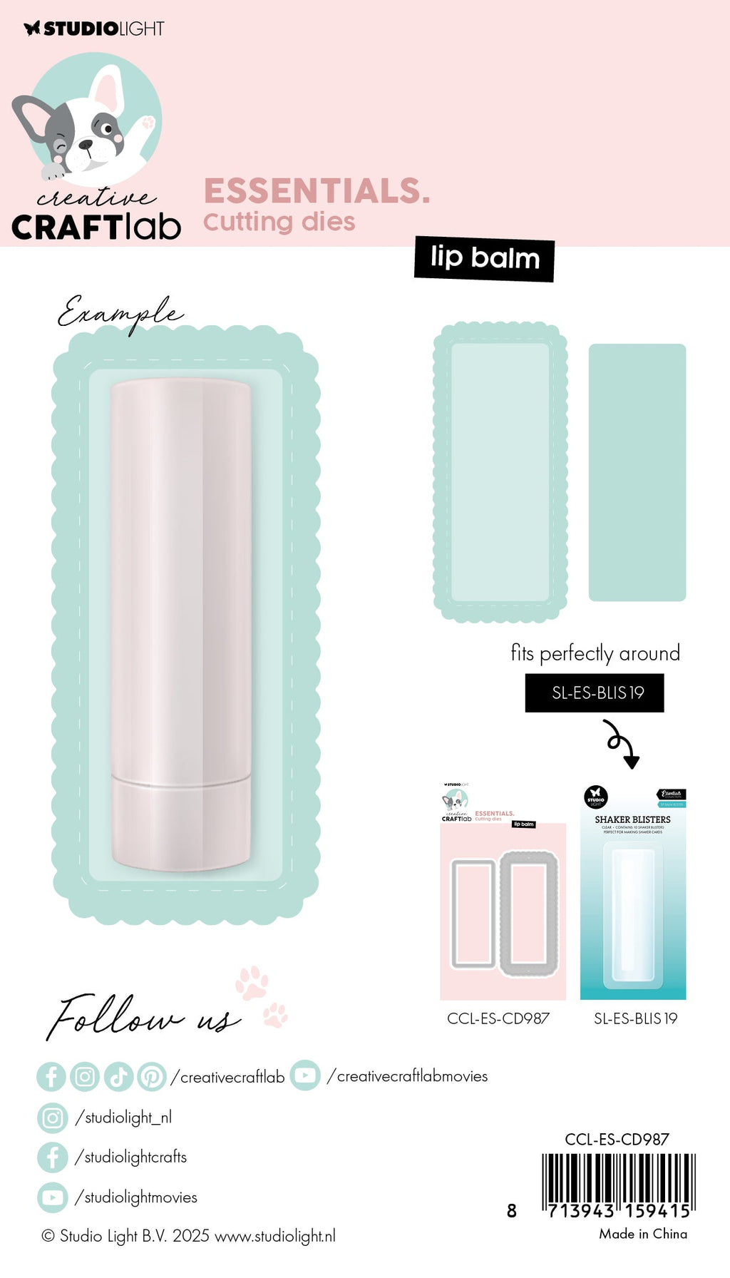 Unlock your creativity with this cutting die set. If you combine this set with the Lip Balm shaker blister (SL-ES-BLIS19) you can make a fun shaker card that can hold a lip balm. Perfect for one-of-a-kind projects. Part of the Creative Craft Lab Essentials collection. 2 pcs