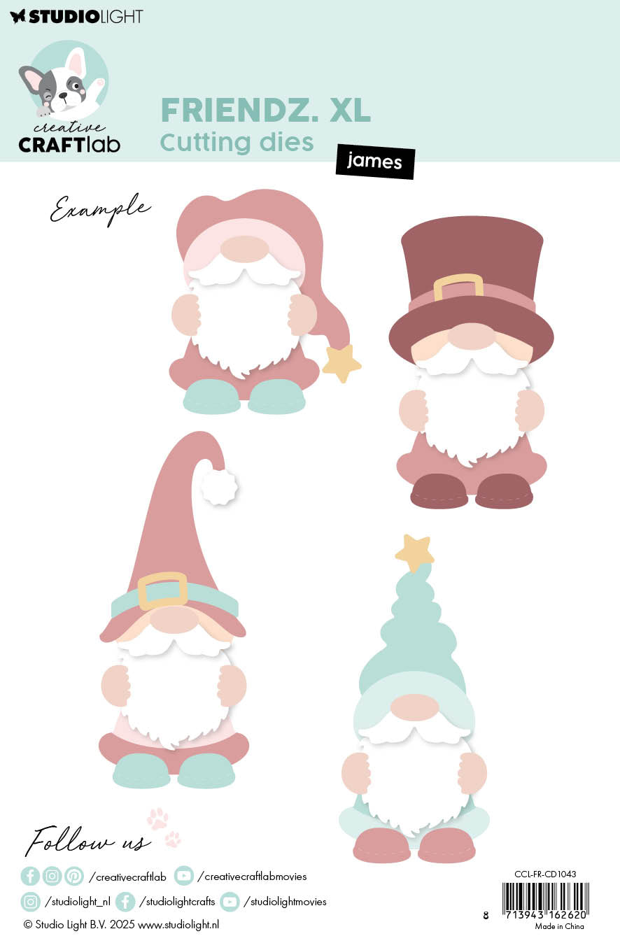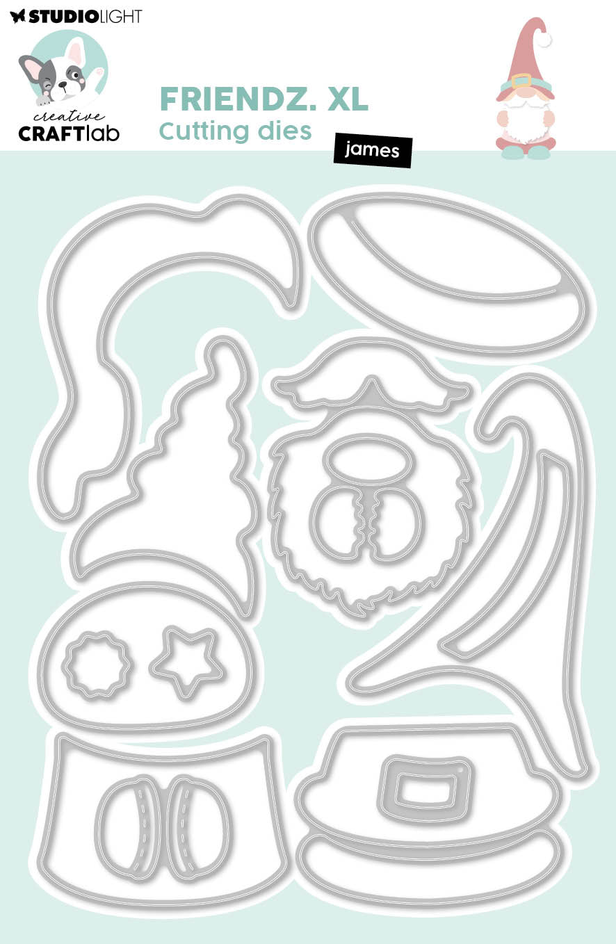 This cutting die set includes everything you need to build an adorable gnome named James including lots of accessories. This set will make a great addition to cards, scrapbook layouts and journal pages. Part of the Creative Craft Lab Friendz collection. 14 pcs