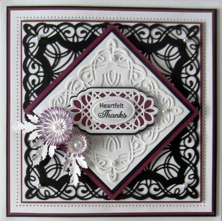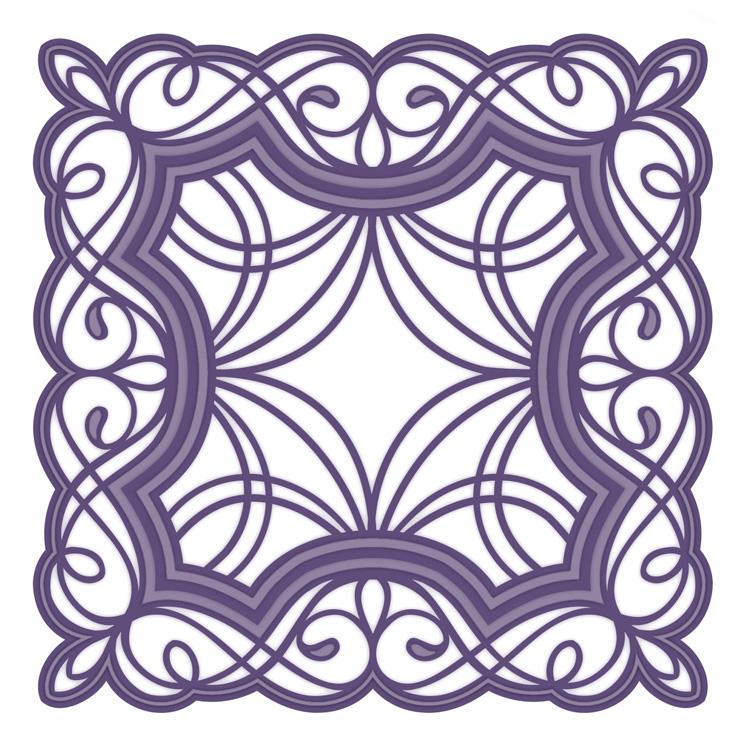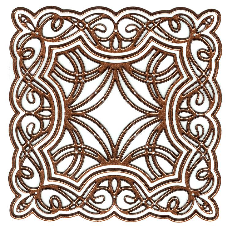 A beautiful scroll-work frame that just needs a central focal point (flowers?) and you're ready to go! Can use the two inner dies to create a smaller frame or tag-sized design.