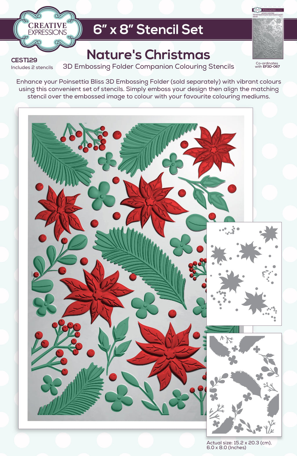 Creative Expressions Nature's Christmas Companion Colouring Stencil Set 6 in x 8 in 2pk
