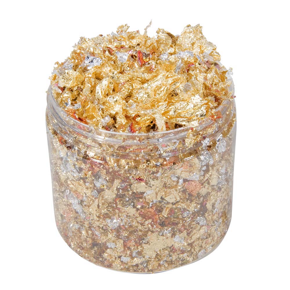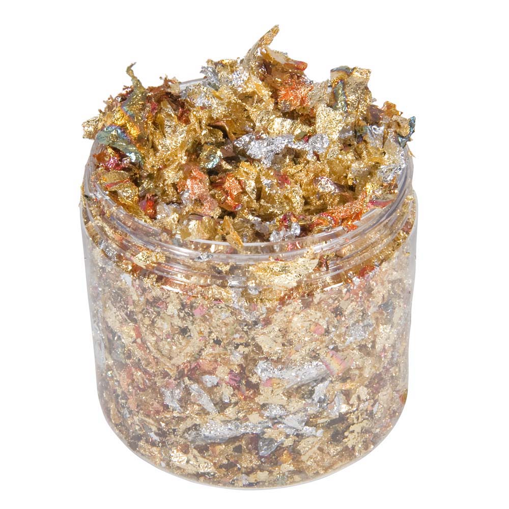 Each pot contains uniquely cut pieces, create metallic effect backgrounds and highlights using these hand cut flakes. Use Cosmic Shimmer Flake & Glitter Glue to adhere them to your crafts for a textured yet luxurious design.