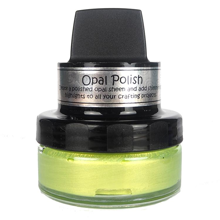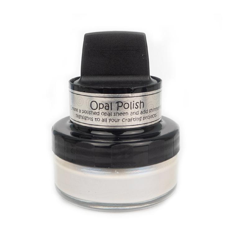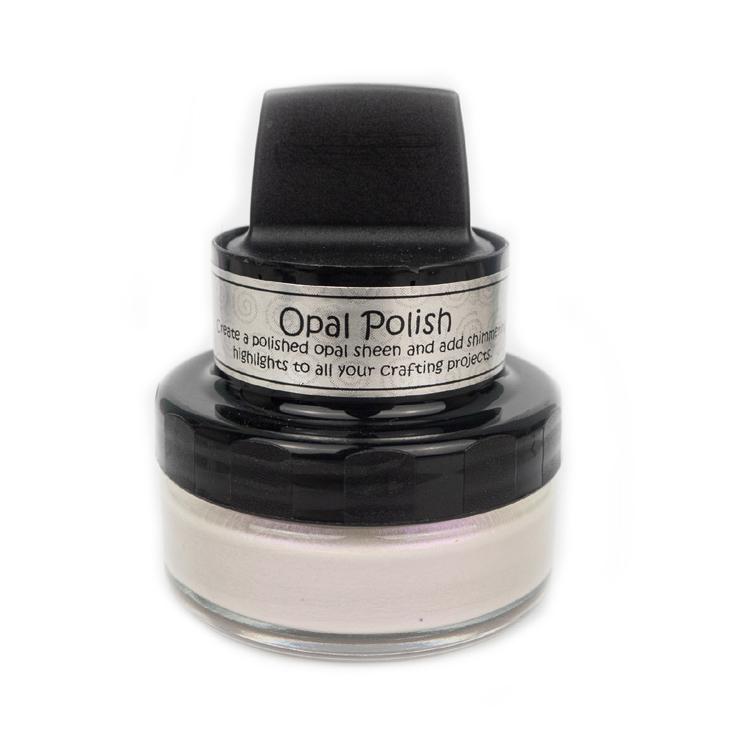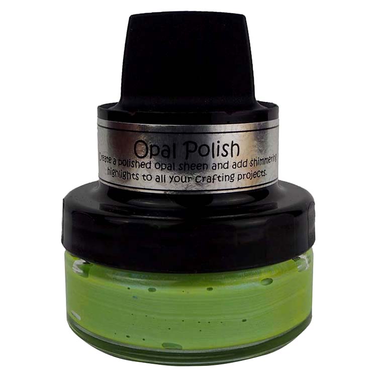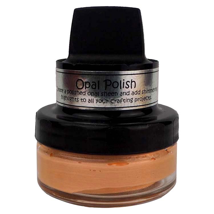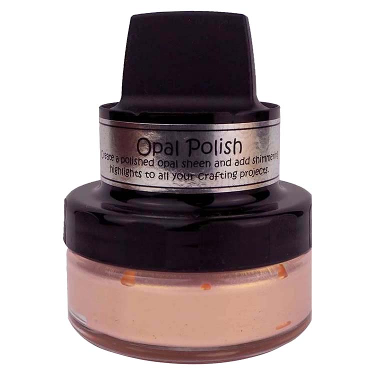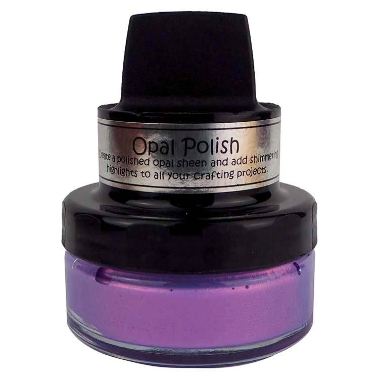 Cosmic Shimmer Opal Polish is a water-based and fast-drying medium, which contains a base colour polish with the addition of mica in a complementary colour, achieving beautiful opalescent effects for craft projects. When used on a dark card the mica colour dominates to give a completely different look. The pots have their own incorporated delivery system making them easy to apply to a variety of surfaces, including card and MDF.