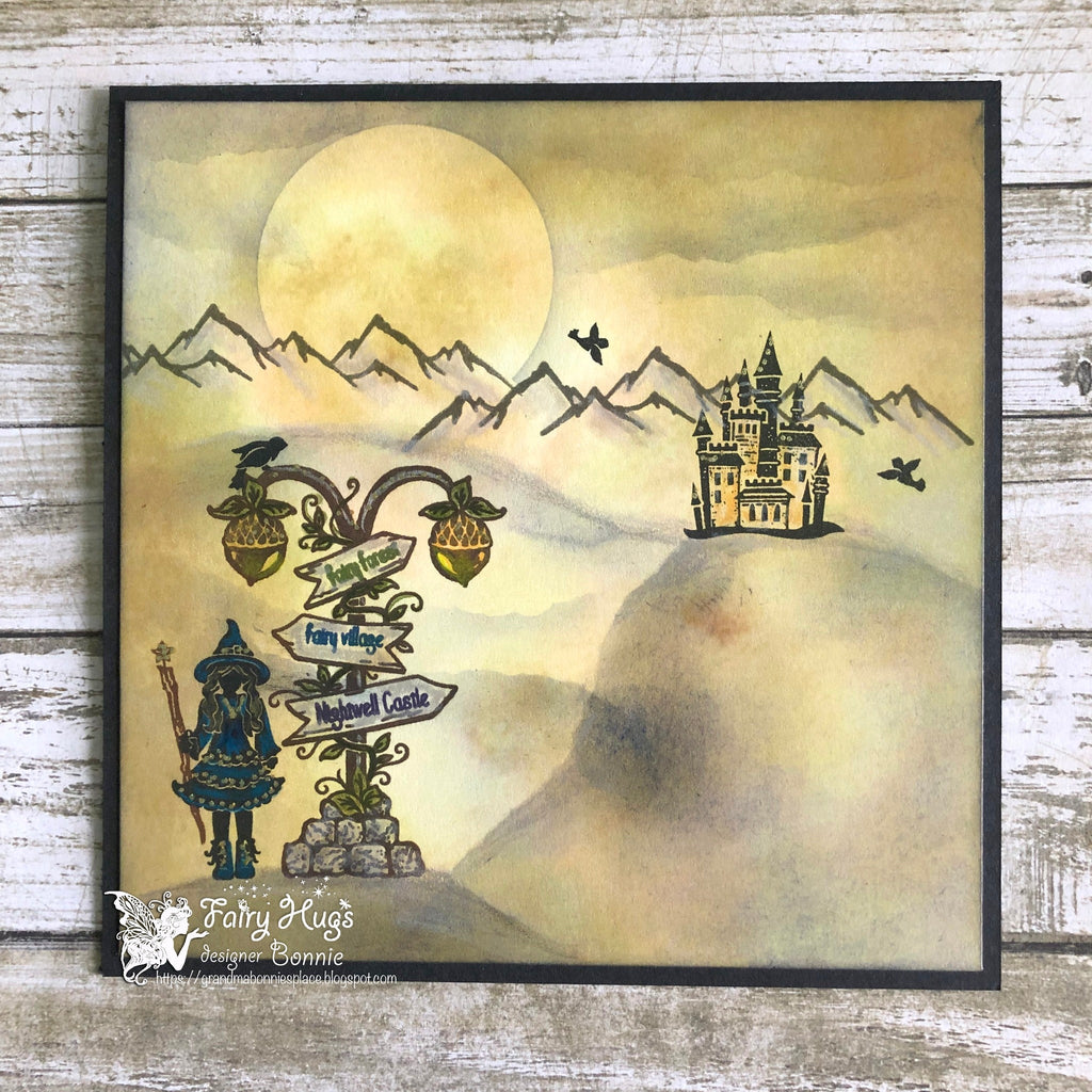 This is a two stamp set with a cute little wizard girl and a wooden staff. The girl stamp measures is 1.75" x 0.75".
