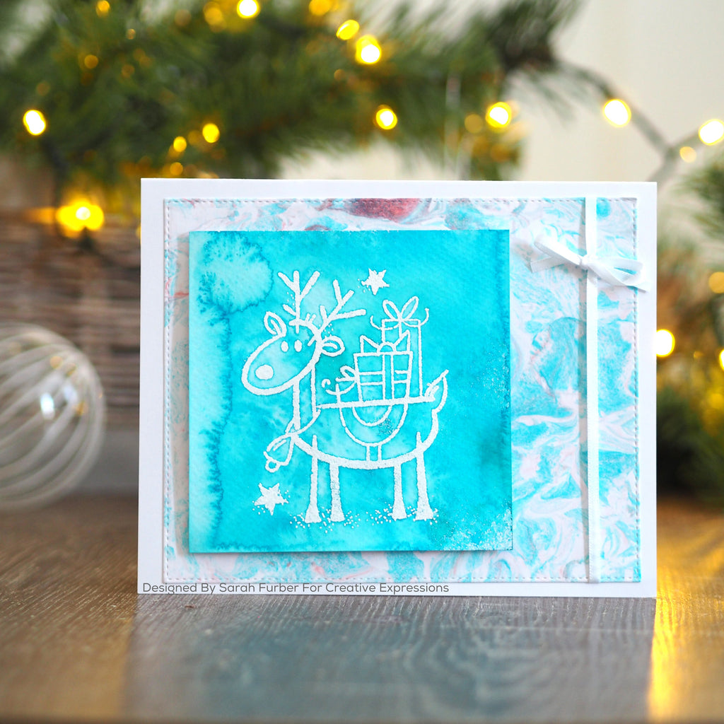 A doodle style reindeer with gifts and some additional sentiments for Christmas.