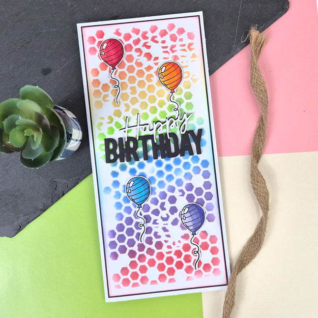 Create fabulous inky backgrounds with the For the Love of Masks - Honeycomb & Netting Textures 6” x 6” mask. The mask features two decorative panels, one a distressed honeycomb pattern and the other a tattered netting inspired pattern. Tile your choice of design as many times as desired for larger cards or projects or simply ink twice for a textured background for a 6” x 6” card blank. Alternatively, mask off sections using Low-Tack Tape to ink corners or borders. Pair the mask with the range of Prism Ink Pads, or why not experiment with Prism Textures Pastes to add a tattered grainy quality to your cards and projects.