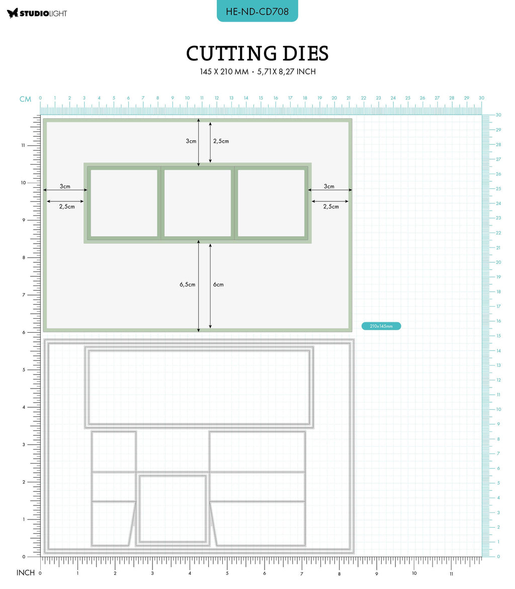 HEN Cutting Dies A5 Trio Flip Card Natures Dream 145x210x1mm 6 PC nr.708