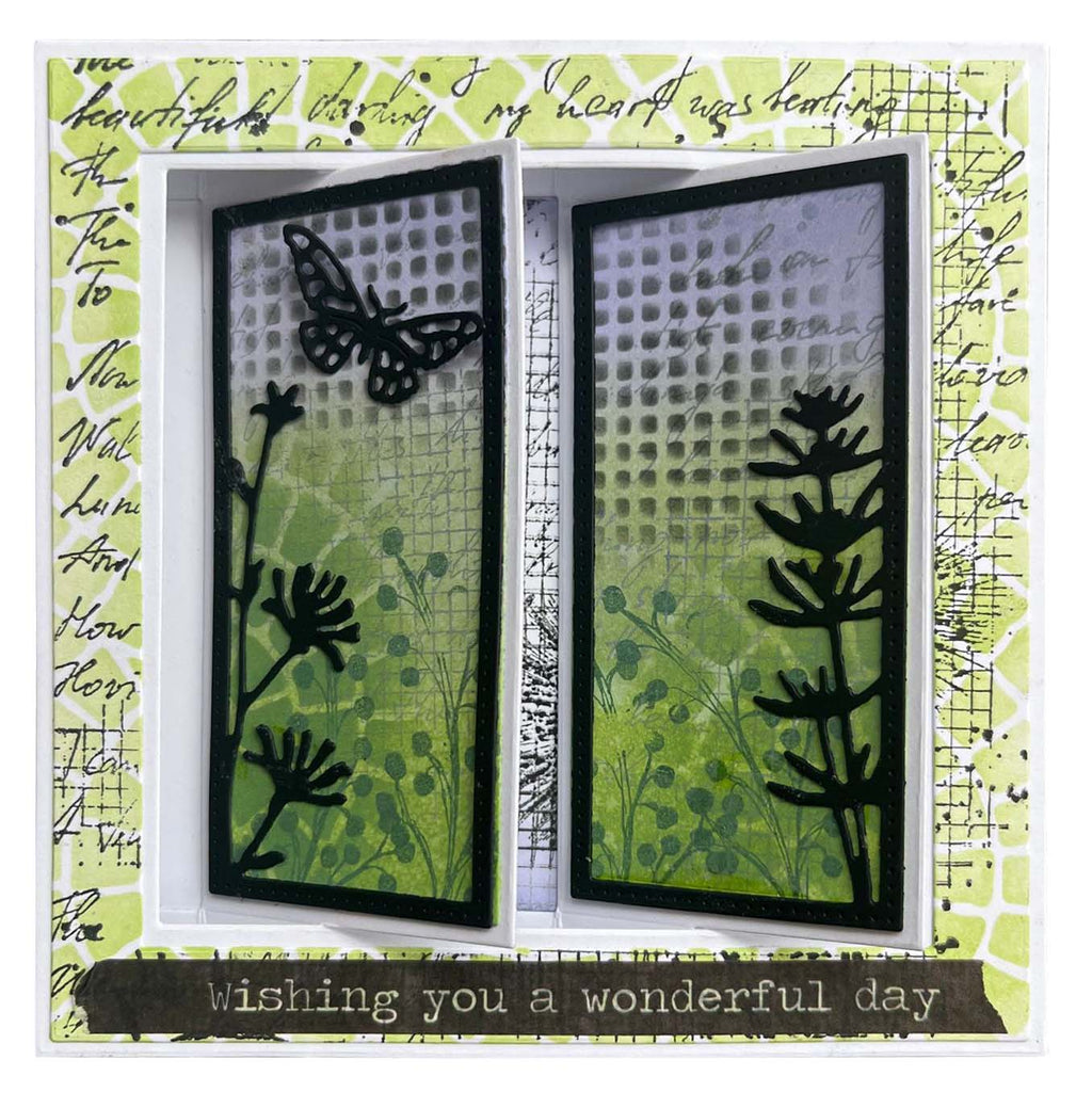 The dies will create a Square Due Flip Card perfect for cards, invitations, or any other art project. These dies will work beautifully with the other dies from the collection. Part of Hazel Eaton's Natures Dream Collection. 6 dies.
