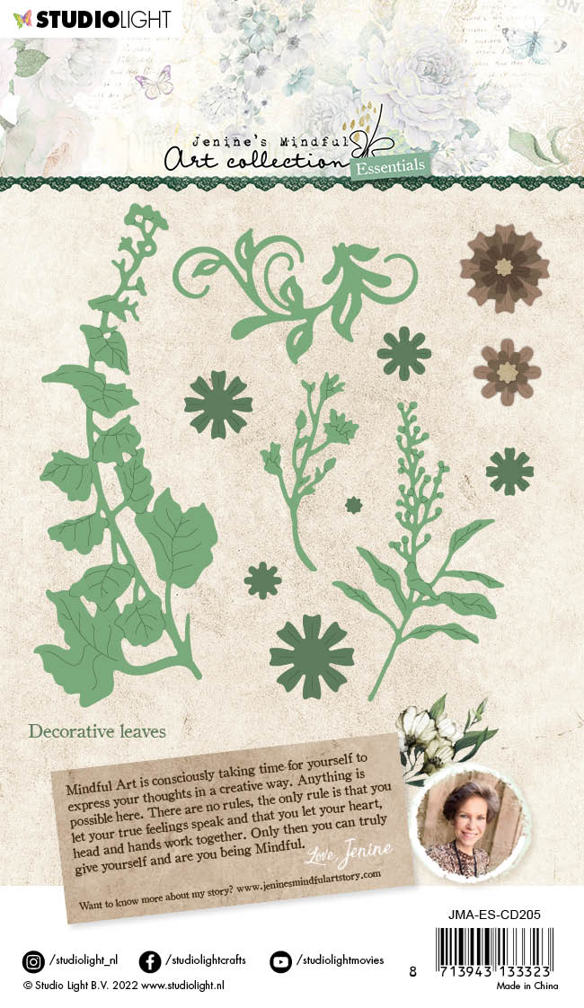 This Decorative Leaves cutting die set includes various floral images. This set will make a great addition to cards, scrapbook layouts and journal pages for any occasion.  Part of Jenine's Mindful Art Collection. 10 dies.