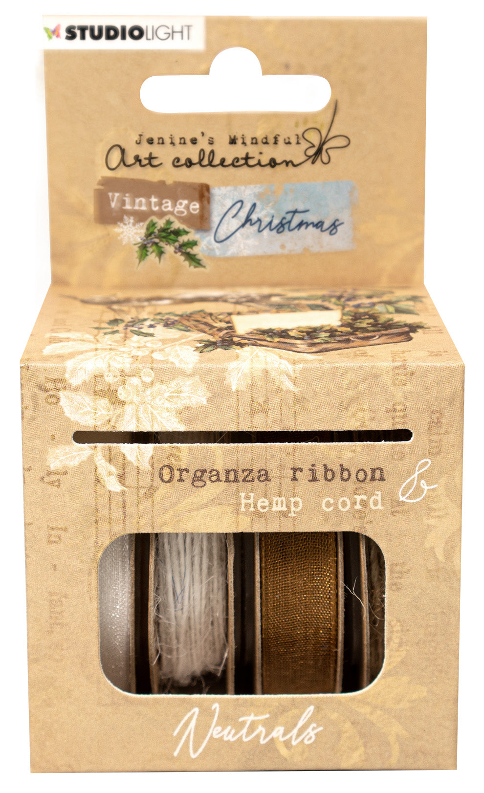 JMA Ribbon Brown Organza & Hemp Vintage Christmas 63x60x105mm 4 PC nr.04