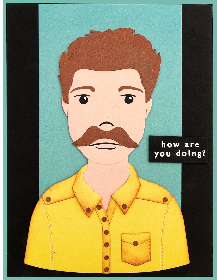 Missees got a boyfriend!! And he is cute or cool or any type you want him to be. This fun stamp set from the Karin Joan Missees Man collection includes everything you need to build your own custom Missees Man. May we introduce you to Brian. Build Missees’ Man as you would build Missees: diecut his head and upper body. Stamp on his eyes and mouth. And add on diecut hair. Dress him up for business with glasses and a tie. Or casual with a denim shirt. Or get him ready for a fancy night out with his Missees. You decide how to build your own Missees’ Man.