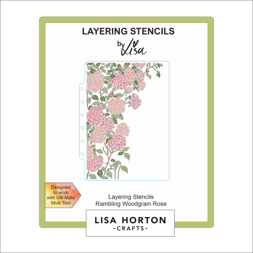 Lisa Horton Crafts Rambling Woodgrain Rose 5x7 Layering Stencils