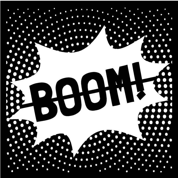 This stencil is a pop-art style featuring the word "boom". Great for graphic style projects or for comic lovers. Includes 1 stencil. Size: 6 x 6 inches.