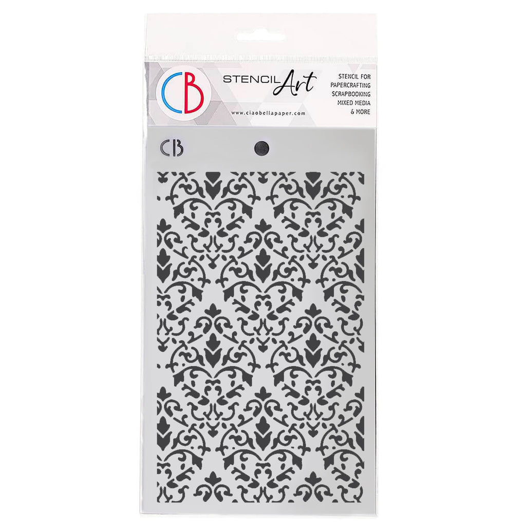 Stencil Art line is designed to add layering textures and designs to your projects. This damask design background mask is perfect for paper crafting, scrapbooking and mixed media projects.