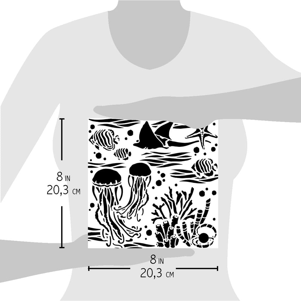 Stencil Art line is designed to add layering textures and designs to your projects. This mask has images of jellyfish, a manta ray, fish, coral and more. Perfect for paper crafting, scrapbooking and mixed media projects.