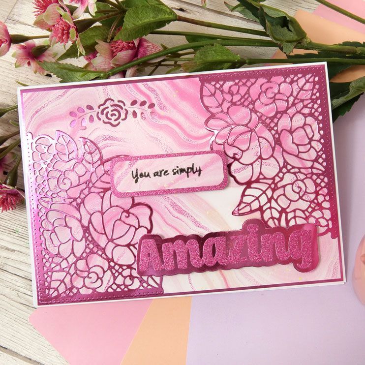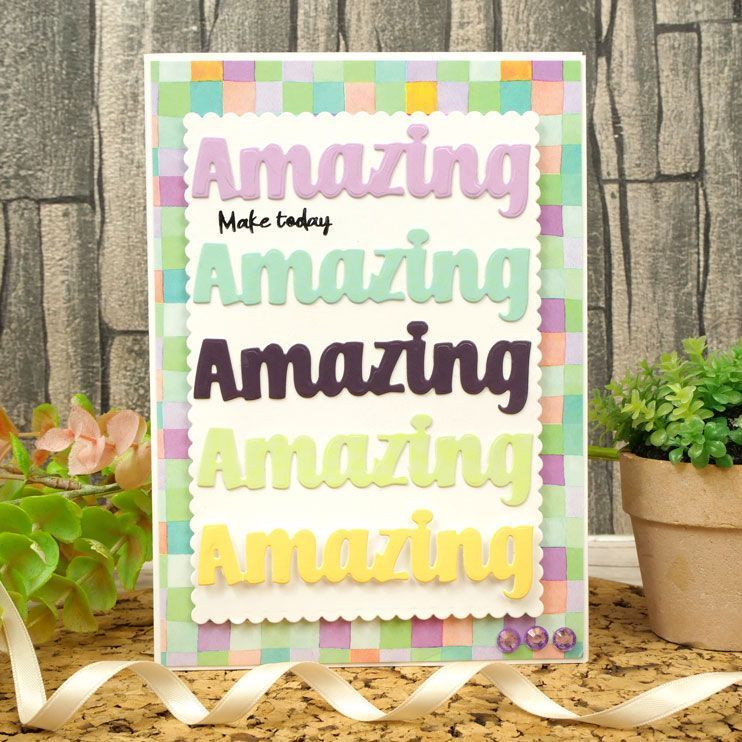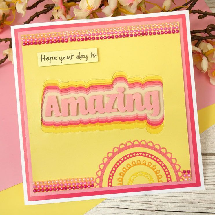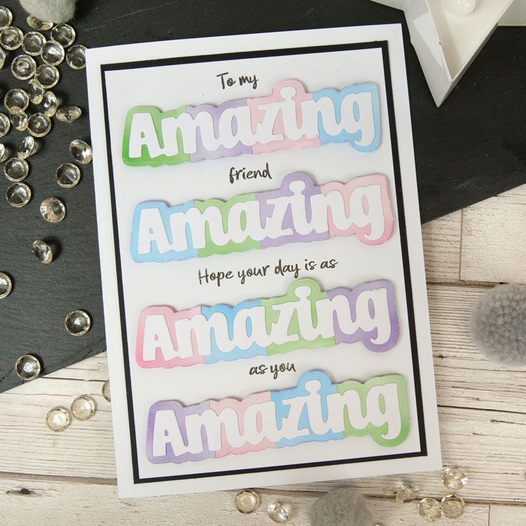 The set also includes 2 edge dies allowing you to cut shaped edges and apertures on your card fronts. Simply place your large word onto the edge or within the aperture to create a different look every time. Alternatively, cut both edges and create a mat layer for your word ensuring your sentiment stands out on your cards and projects.