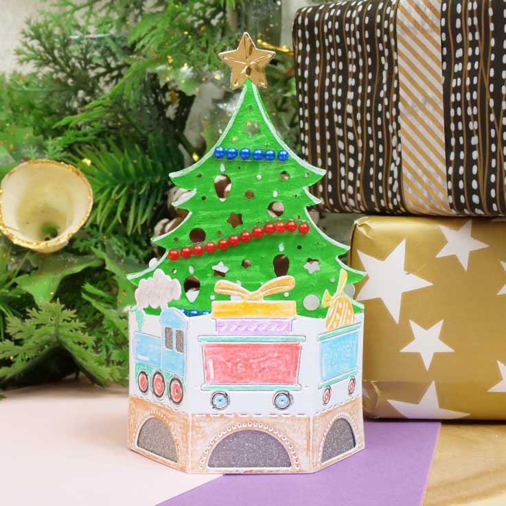- Create a festive train scene for your Pop-Up Christmas Tree Cards