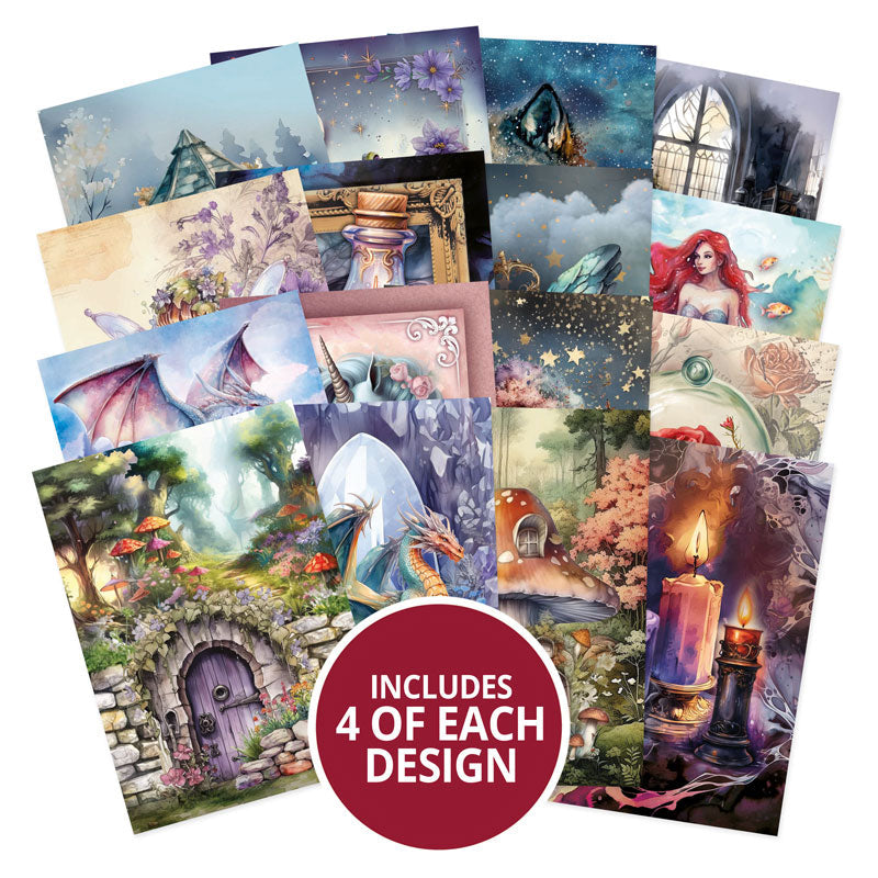 The pad contains 16 different page designs with 4 of each included. Each page is high quality heavyweight 150gsm coated paper and the designs are perfect for fussy cutting, embellishing or image layering to create traditional decoupage designs. This treasure trove of mystical, magical and fairytale themed artwork will be the perfect addition to your Craft Stash and be a pad that you can return to time and time again.