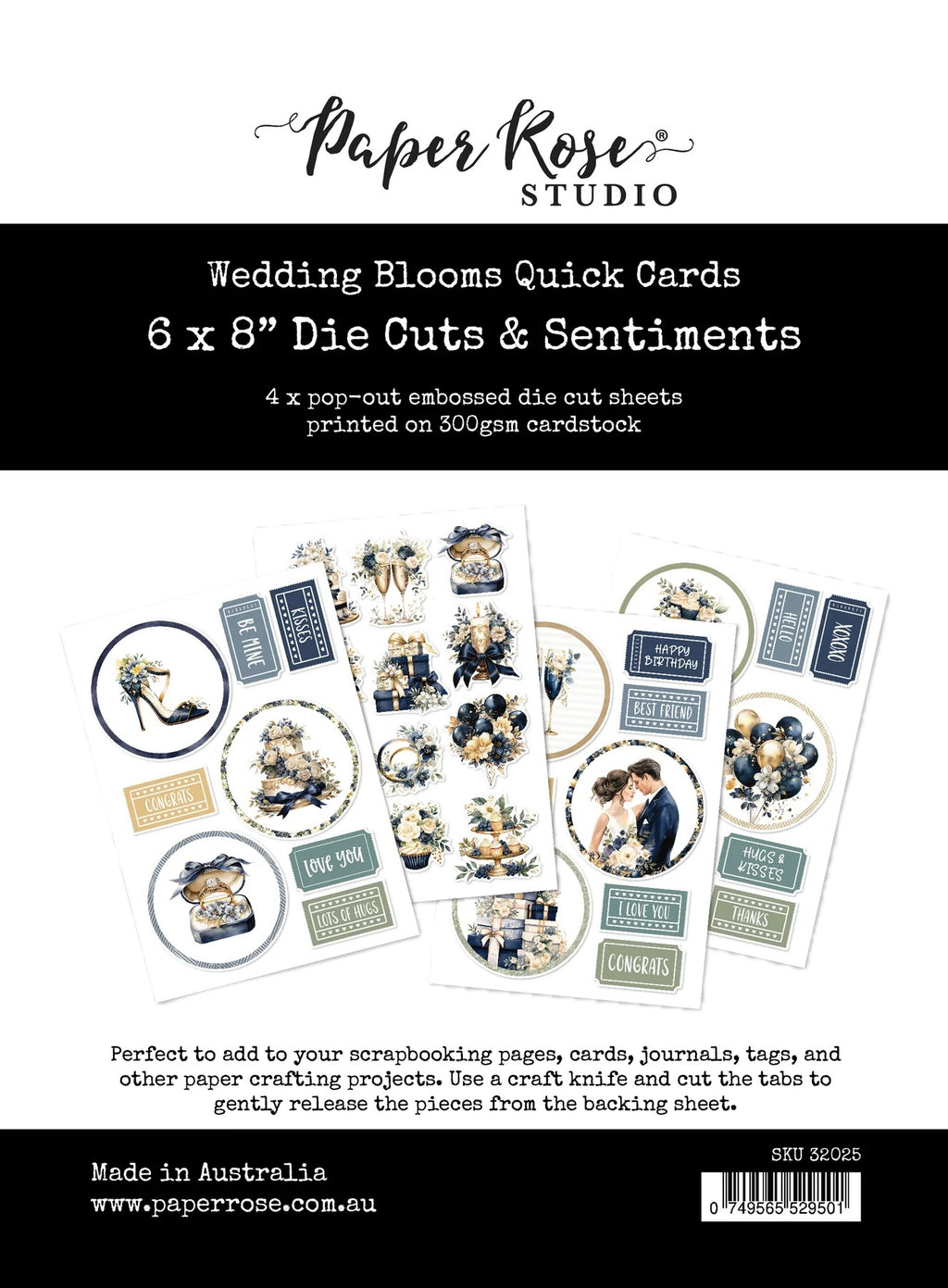 This set includes extra die cuts, sentiments which coordinate with our Wedding Blooms Quick Cards Kit 32025