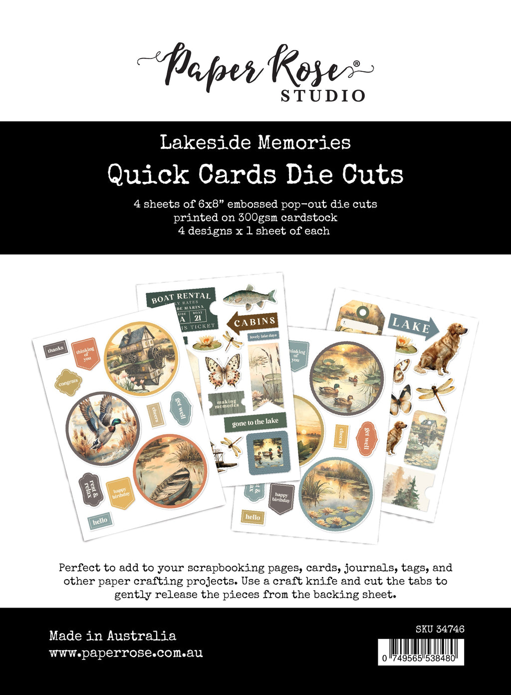 Perfect to add to your scrapbooking pages, cards, journals, tags and other paper crafting projects. This set includes extra die cuts and sentiments, which coordinate with the Lakeside Memories Quick Card Collection 34743. 300gsm cardstock. Made in Australia.