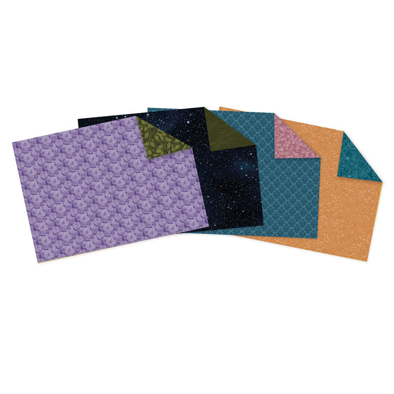 You will also receive 4 double-sided printed papers that have been designed to work perfectly with the collection, 4 sheets of printed parchment featuring background designs and trimmable scenes & sentiments, and a Moonlit Forest 6" x 6" Mask.