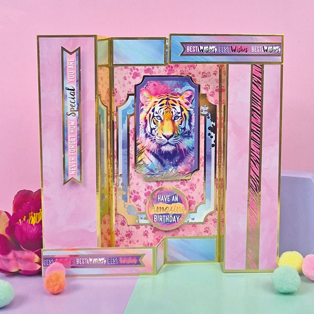 The free gift with this issue; ‘A Splash of Colour' Deluxe Card Collection is awash with colourful and captivating animal artwork that is brought to life with abstract painterly textures, watercolour washes, and brushstroke details. You’ll find a whole host of animals in the collection from dogs and cats, to horses, elephants, tigers and more. Paired with wonderfully uplifting sentiments and featuring rich gold foil and a fresh, bright colour palette throughout, you can really let your creativity run wild with this collection and create cards to brighten anyone’s day!