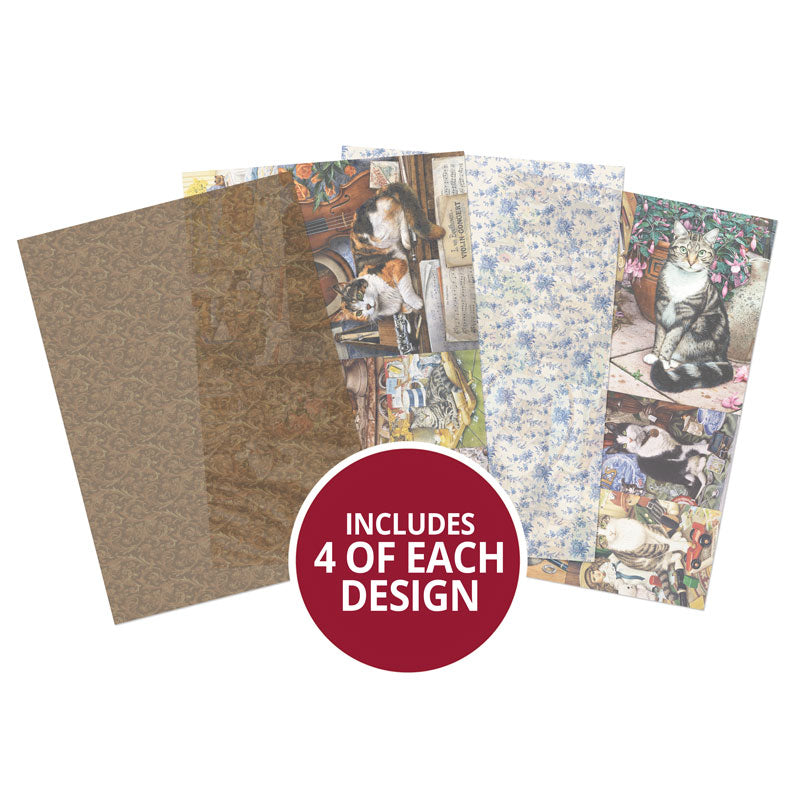 The Purr-fect Days Printed Parchment features 4 different designs; one decorative damask, an all over stylized floral pattern along with two pages of our beautiful Purr-fect Days cat images ready for you to cut out. The translucent parchment will softly overlay and complement the Purr-fect Days collection beautifully, it is also great for fancy projects such as lanterns and windows etc.