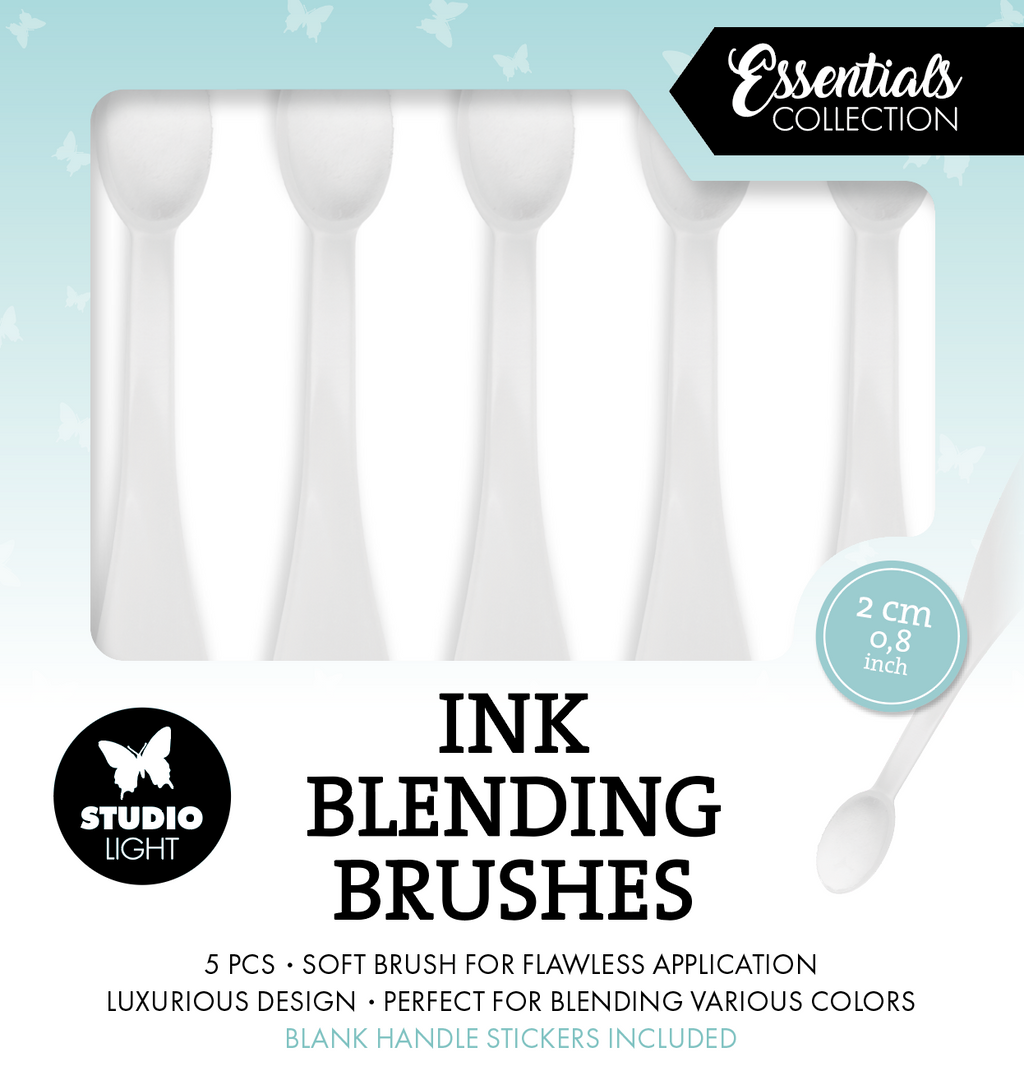 Five piece Ink blending brush set with soft brushes for flawless application and a luxurious design. Perfect for using with masks and stencils. Ergonomic flexible handle. Built for beautiful blending with no harsh lines perfect for blending various colours. Blank handle stickers included.