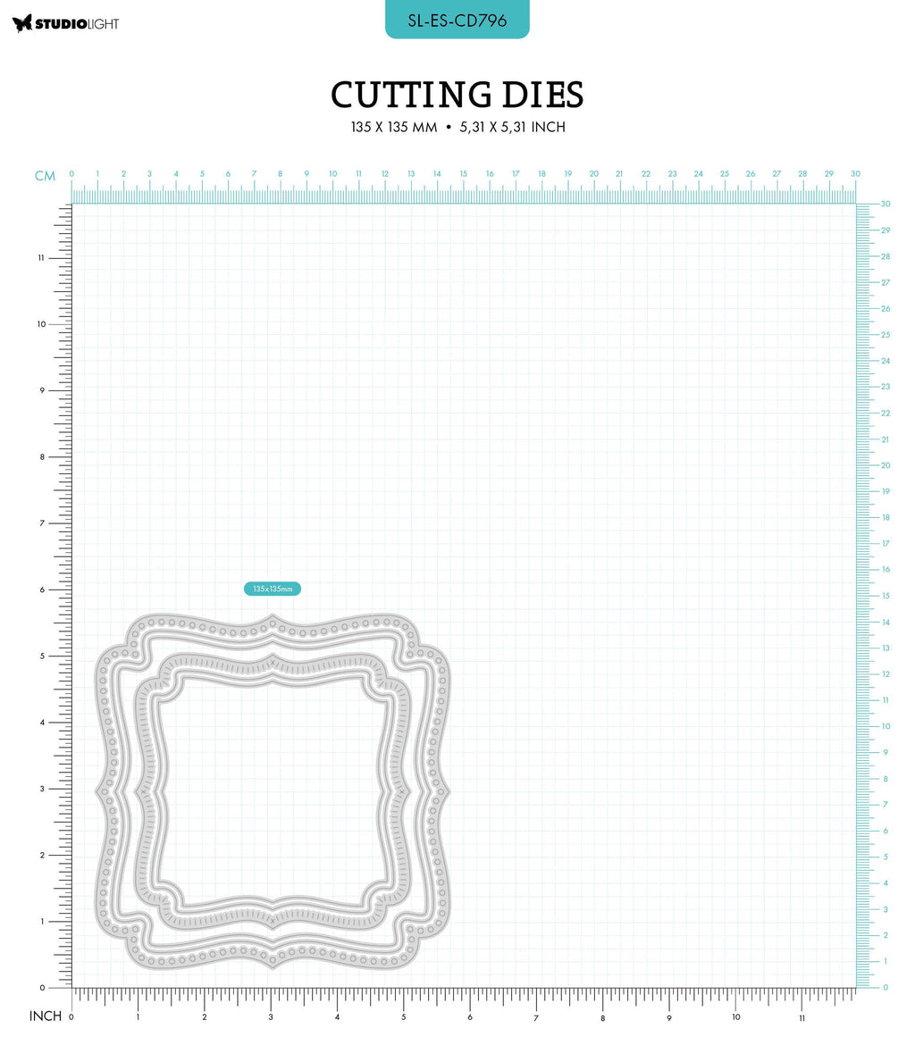Use this die set to cut ornamental frames with a scalloped edge which can be nested or used alone. Die cut your shapes out of paper or vellum. Perfect for cards, scrapbook layouts or journal pages. 6 pcs.