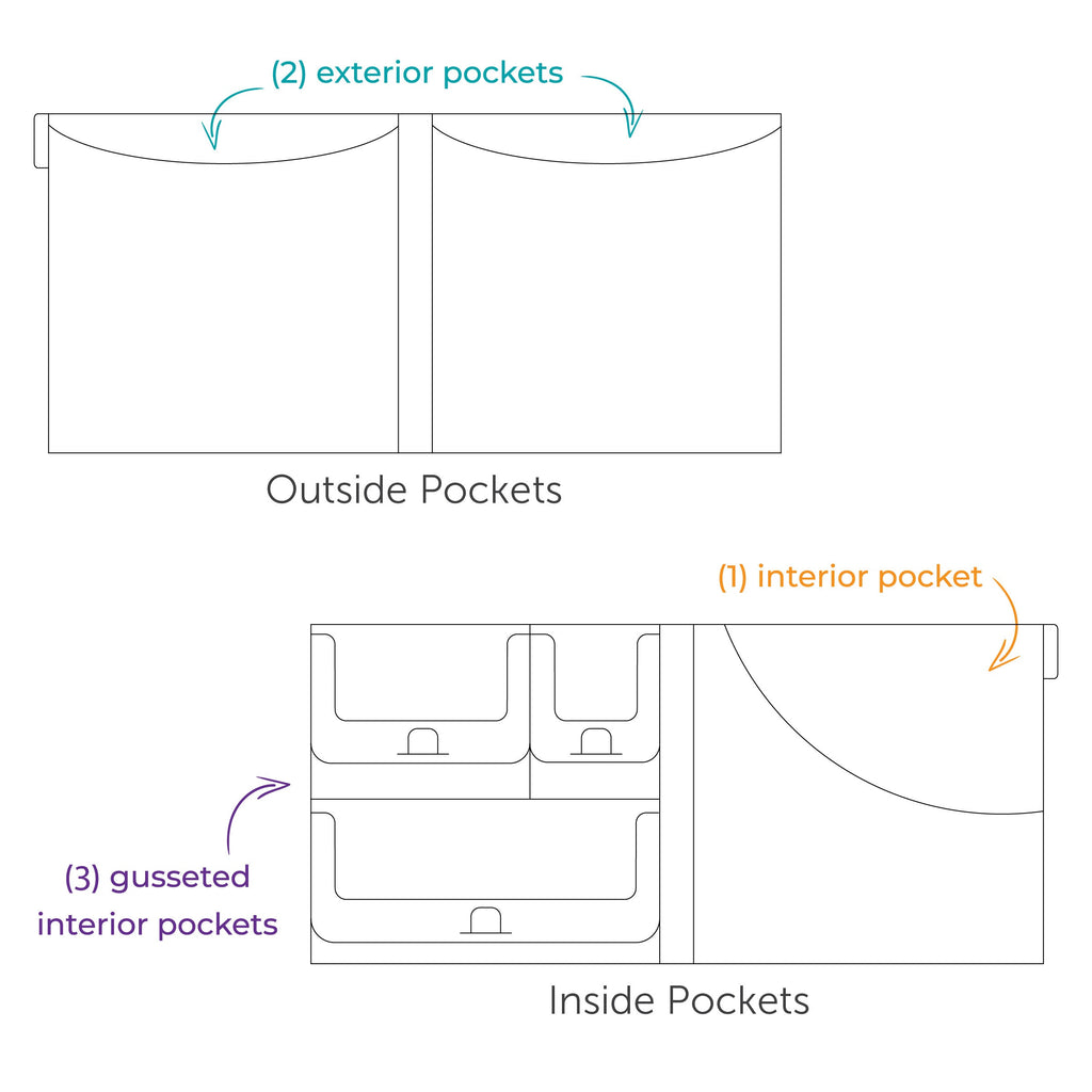 - 4 interior pockets, 2 exterior pockets, 3 tab placements