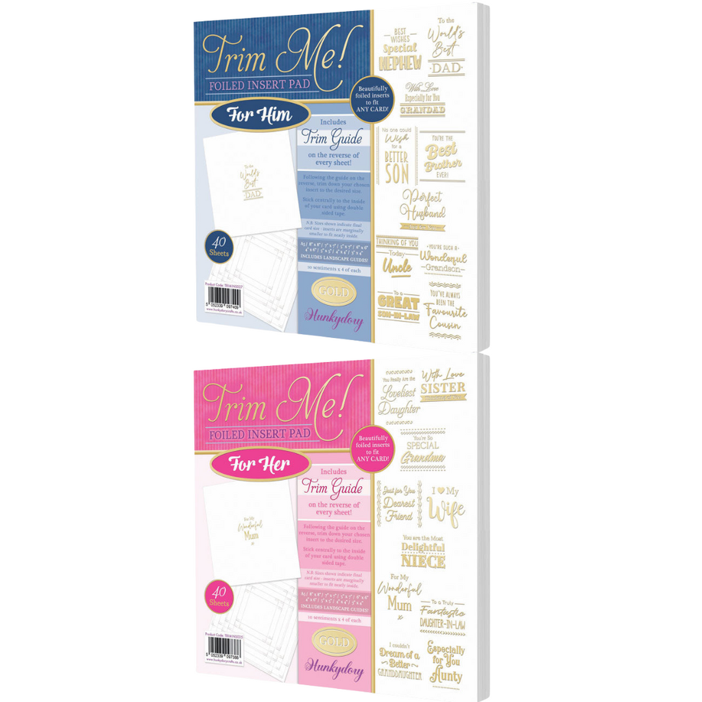 Stuck for an insert? Hunkydory's Trim Me! Foiled Insert Pads will revolutionise your crafting and make that perfect finishing touch easier than ever before!