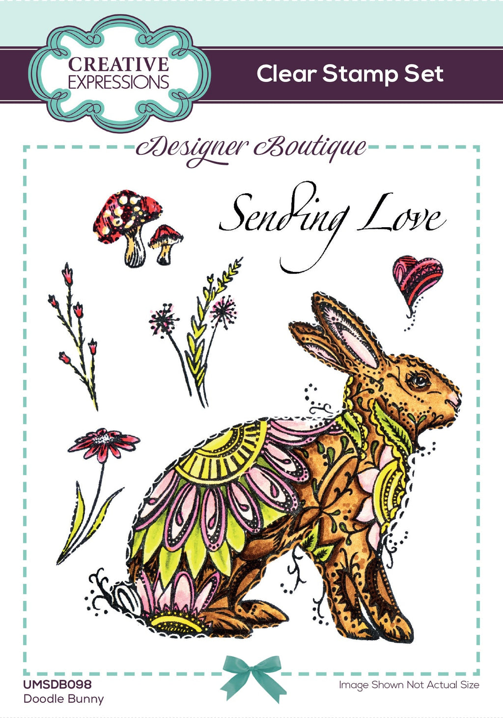 Creative Expressions Designer Boutique Doodle Bunny 6 in x 4 in Clear Stamp Set