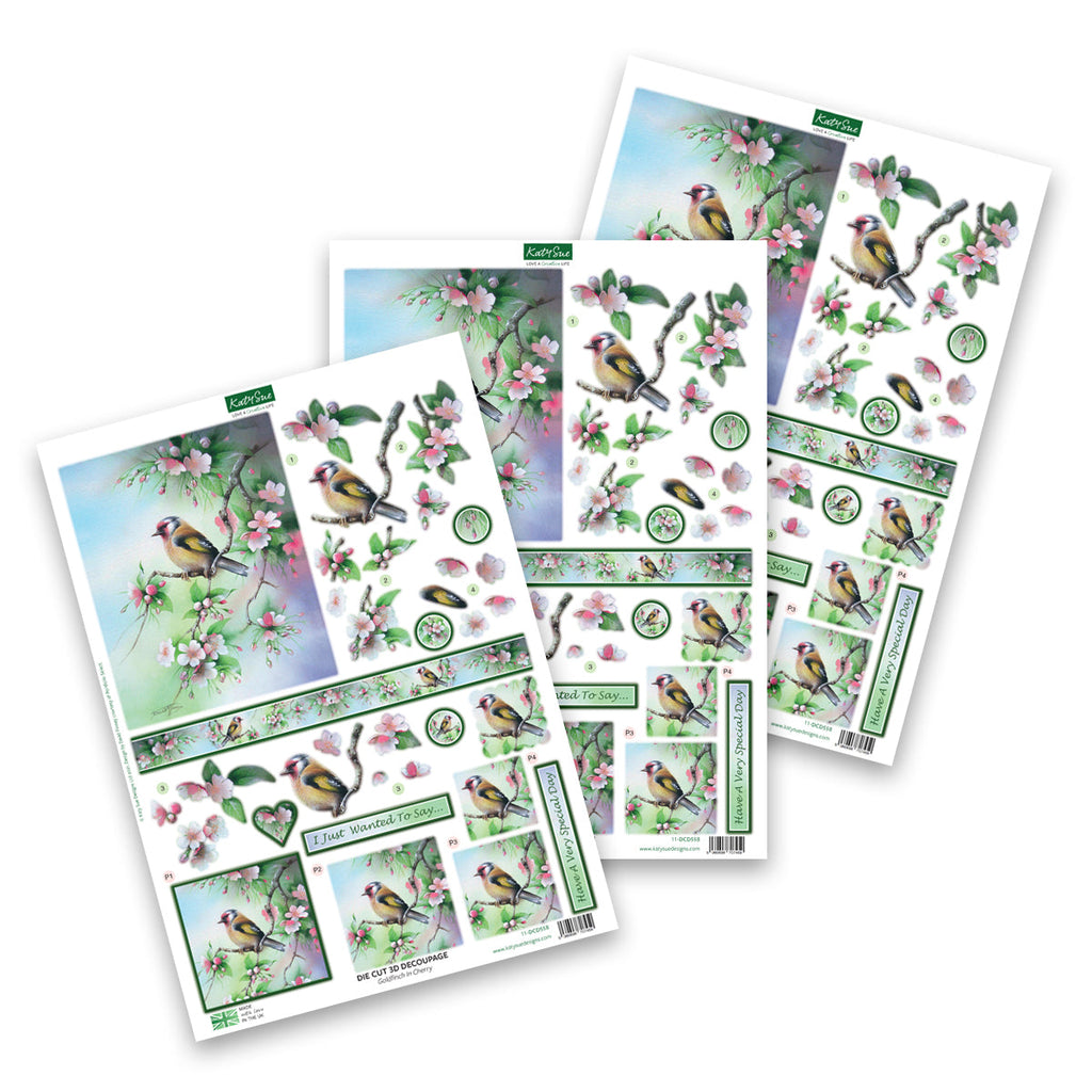 Die Cut Decoupage – Goldfinch In Cherry (Pack Of 3)