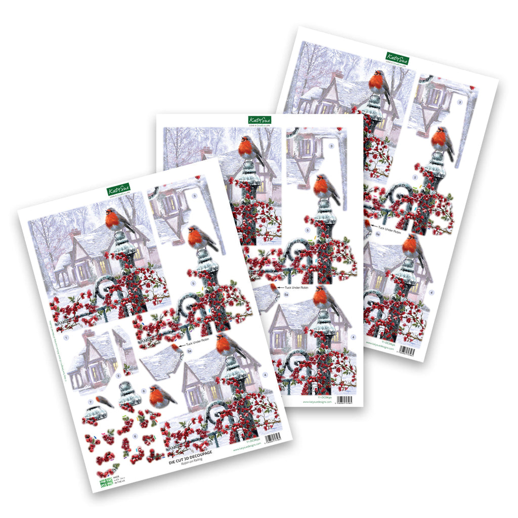 Die Cut Decoupage – Robin On Railing (Pack Of 3)