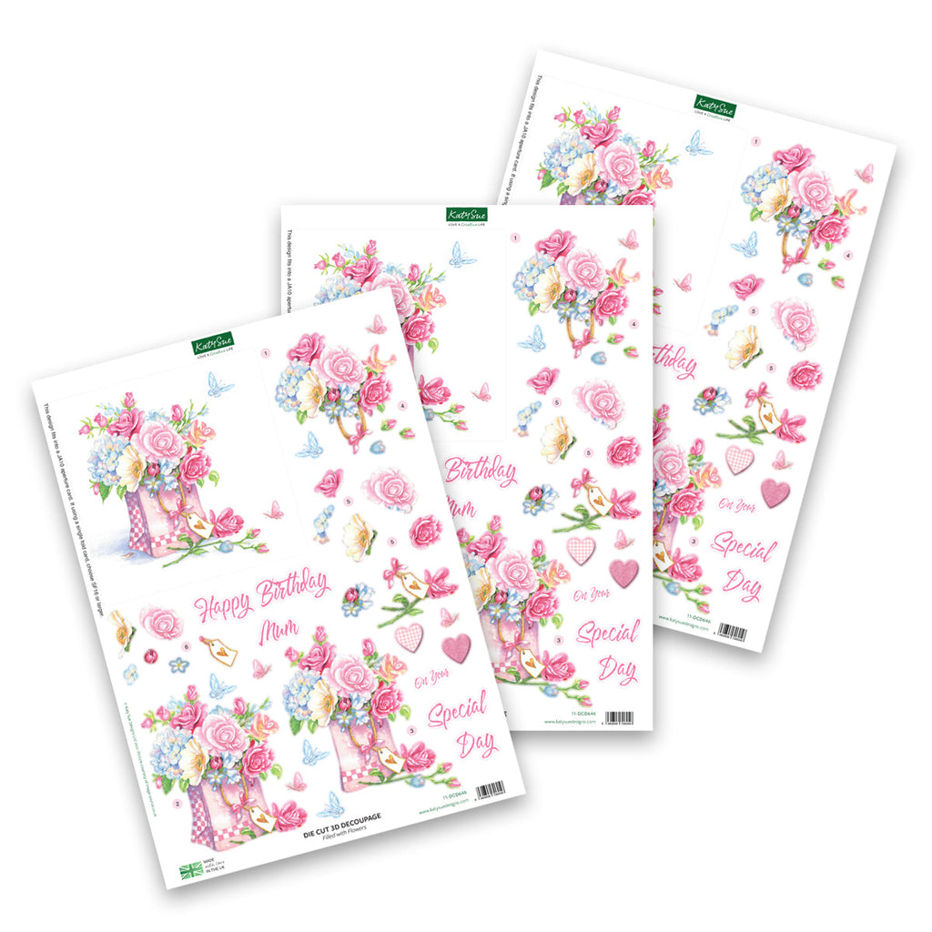 Die Cut Decoupage – Filled With Flowers (Pack Of 3)