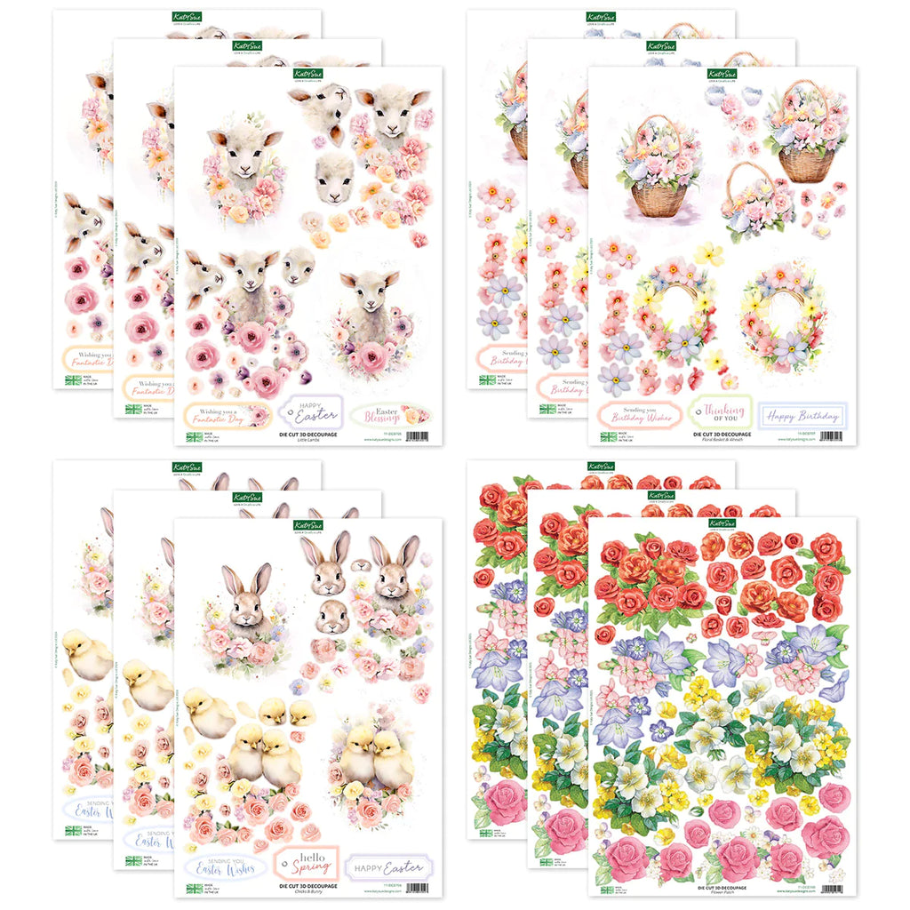 Die Cut Decoupage - Easter Animals & Spring Florals (pack of 12)