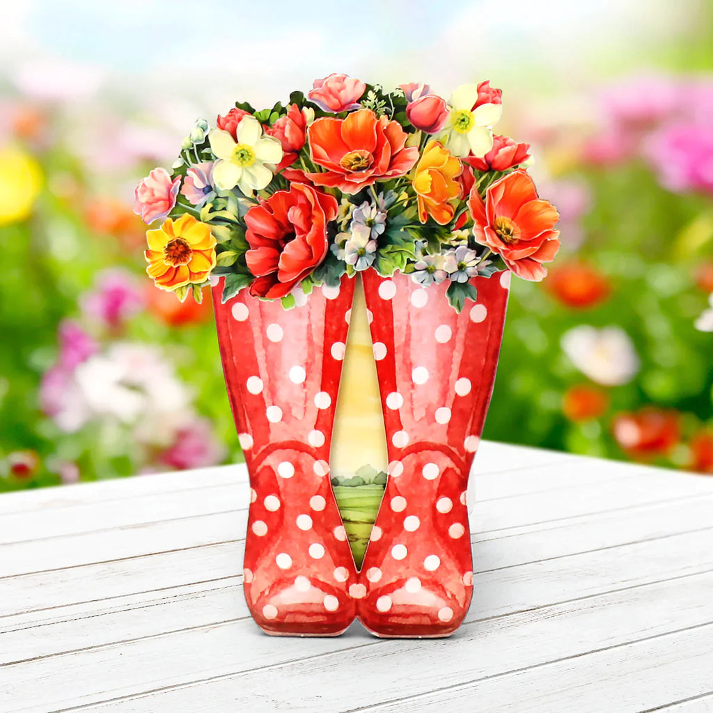 Elevate your creations with the meticulously curated decoupage florals, each designed to complement each Wellington boot design. Whether you're drawn to the classic elegance of a daisy-strewn boot or the playful allure of a peony-filled pair, the possibilities are as endless as the garden itself. And with four distinct die cut floral bouquets to choose from, you'll be spoiled for choice as you customize each card with your unique spin.